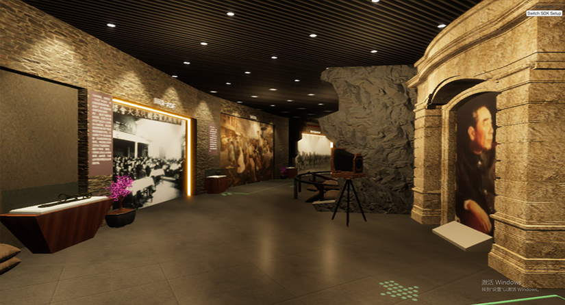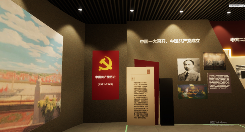 在虚拟党史馆里里将会有人工智能AI讲解员带领大家参观学习,走到不同区域会自动响起不同的讲解词,解决传统展馆无人讲解的难点。走到特殊几个历史事件触发程序,展馆墙壁弧形大屏上会呈现该历史事件的红色影片。