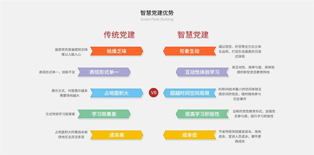 VR技术作为一项全球前沿技术,VR+智慧党建,它围绕党的核心思想,提炼党的核心内容,以虚拟现实技术为手段,虚拟现实设备为载体,打造科技型党建,智慧党建,成为新时期党建工作的新趋势。