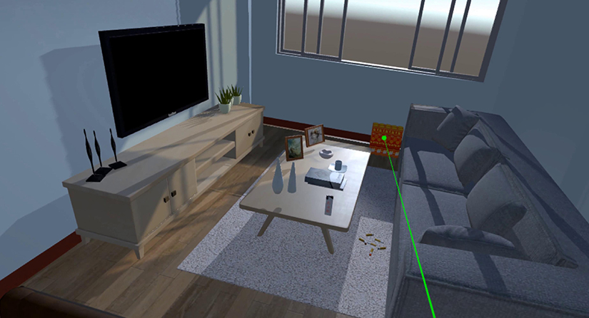 体验人员在90平方的房子中,体验人员可以在厨房、客厅、卧室移动,三个房屋空间中存在许多消防隐患,体验者需要一一指出。