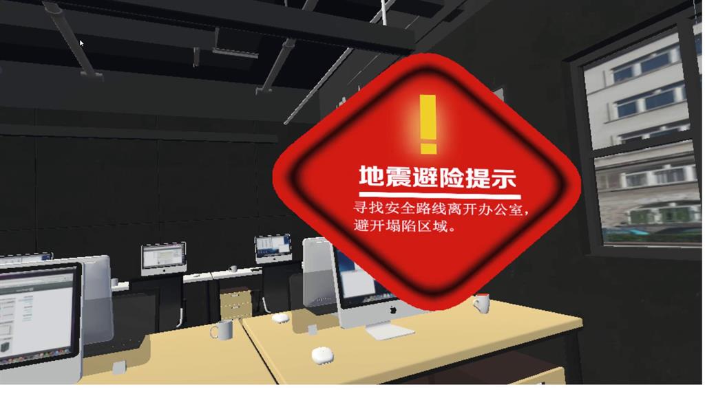 本场景主要讲解在办公室发生地震时如何正确有效的自救。