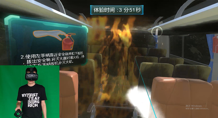 本系统基于三维建模、仿真引擎等技术,配合HTC-viveVR外设,模拟高速客运突发火情开发一套面向驾驶员(客运安全员)针对火情应如何合理安全规范的组织乘客安全逃离着火车厢,并实施相应的应急措施救援体验。