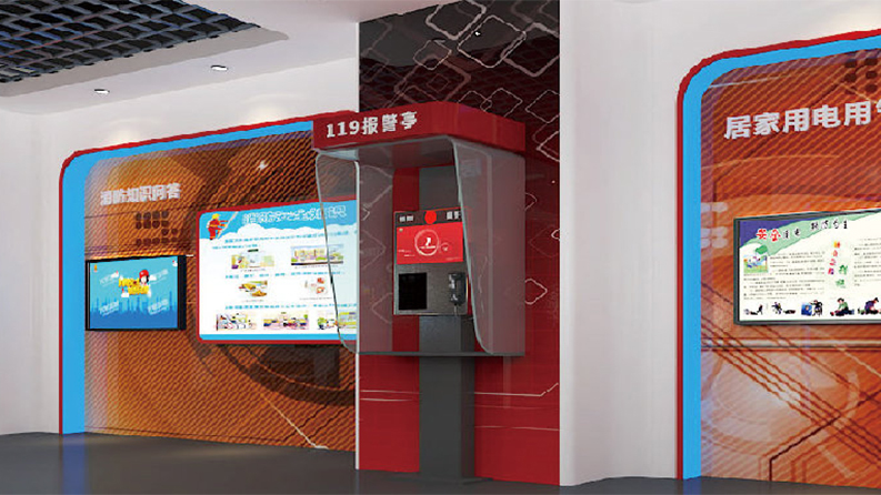 119模拟电话报警体验系统融合了智能语音识别、真人真实对话、三维动画演示等技术,体验者可通过拨打119电话与虚拟接警员面对面对话(根据火灾现场图片提取报警信息),学习报警过程中的各类知识要点。同时还可选择观看到各类爆笑报警视频画面以及报警流程的动画演示等。