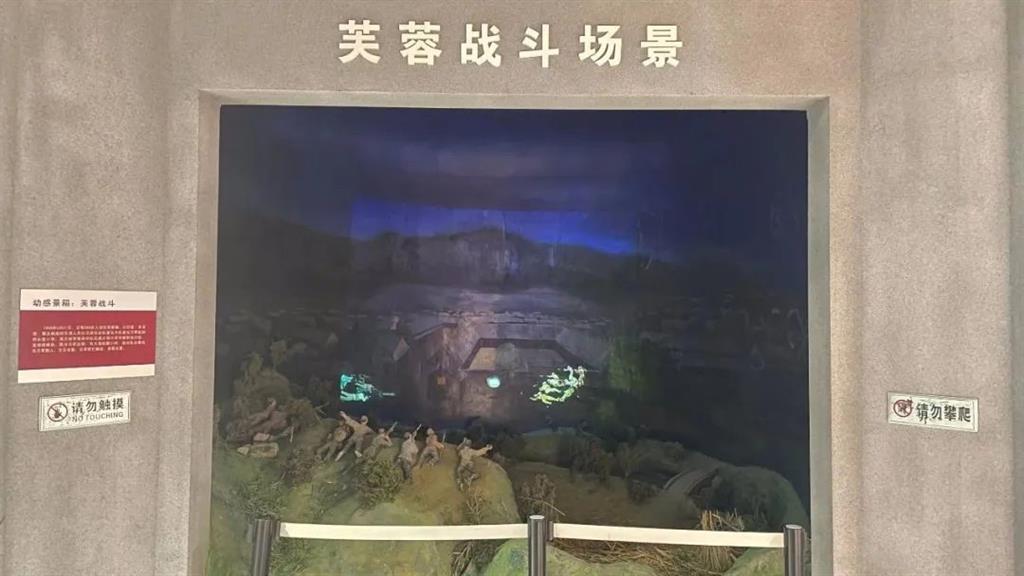 该区域为纪念馆还原场景区,其中轰炸场景是通过利用现代的声光电技术制造出逼真效果,再配合氛围灯光,模拟还原历史中日军飞机在头顶上方的投弹、房屋被摧毁发出剧烈爆炸的场景;芙蓉战斗是根据现场场景要求,安装壁挂有源音响并配合芙蓉战斗场景,还原展示抗战历史事迹;两块场景也使还原使纪念馆展览更加具有立体视觉感、艺术观赏性、参与互动性和宣传教育功能。