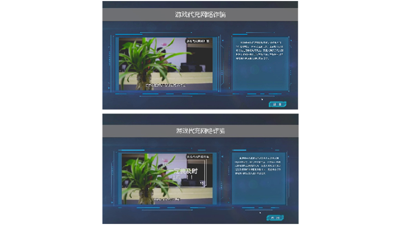 体验者通过点击立式触控屏,大屏上显示相关内容。了解常见诈骗形式与手法,内容包含:假冒公检法诈骗、冒充领导、熟人诈骗、冒充客服诈骗、贷款理财诈骗等常见15种诈骗方式展示。