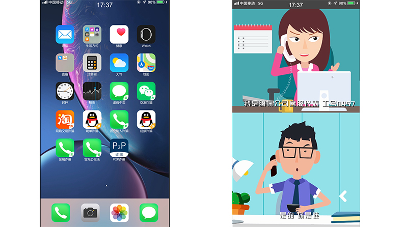 本系统运用了虚拟仿真技术,模拟手机操作系统,将9大常见诈骗案例,通过手机应用图标的方式,展示 给体验者,并能触发对应的案例。案例包含:冒充管理人员、冒充熟人诈骗、虚假中奖、交友诈骗、刷单诈骗、QQ视频诈骗、网上交易诈骗、金融诈骗、P2P 诈骗案例;体验者在体验案例的过程中,将遇到一些重要的选择,并将引导你进入之后的情节,最后将有虚拟民警,讲解防范此类诈骗的技巧和要点。