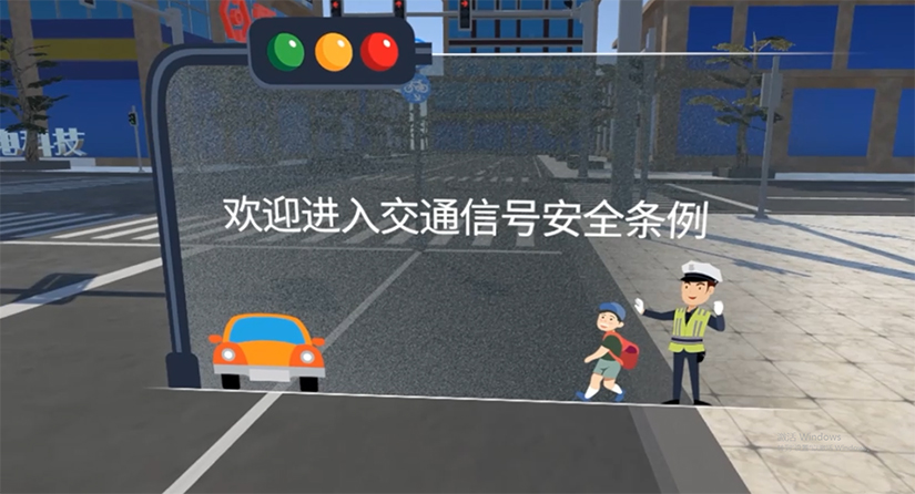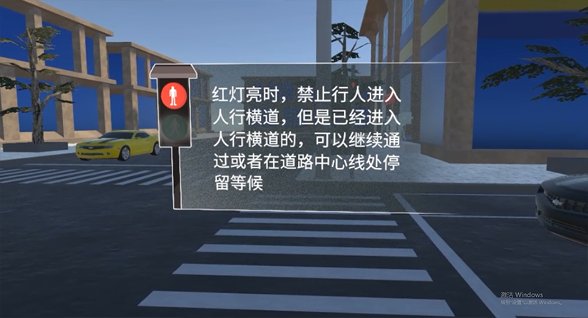 体验者需通过手柄选择与文字相对应的交通标志图案,最后有得分展示。体验者通过VR虚拟场景,模拟教学知识点,使学习者通过游 戏铭记每个交通标志代表的含义。