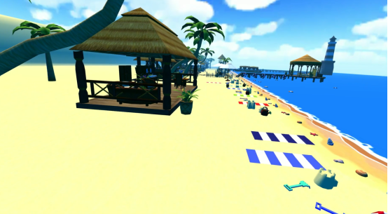 模拟一个数平方公里的沙滩漫游的虚拟现实的环境,帮助服刑人员缓解心理压力和紧张情绪。