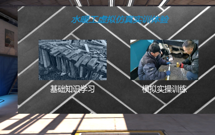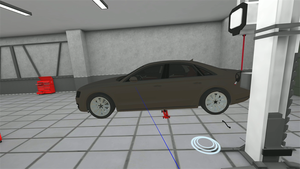 VR汽车轮毅改装场景,还原汽车车间和换轮毅操作流程,服刑人员带上VR眼睛,沉浸式学习换轮毅拆装,换轮毅工具的识别和工具操作,让服刑人员可以在虚拟场景中反复实践,学习汽车轮胎修补技能。