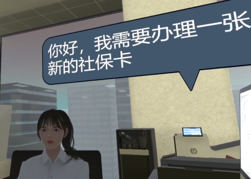模拟到派出所现场相应窗口办理社保,体验者以第一视角携带相关证明到派出所完成社保卡办理。