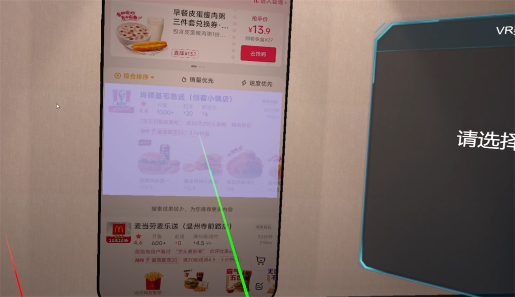 VR外卖下单操作模拟