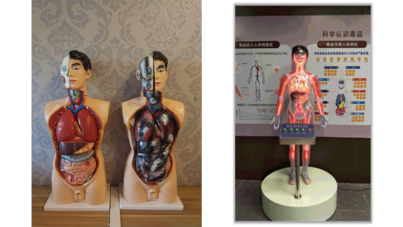 吸毒对人类身体内部器官危害较大,本系列产品主要 呈现吸毒后,人体内部器官对比,对人体各个机能产 生重大危害,警示参观者,远离毒品。