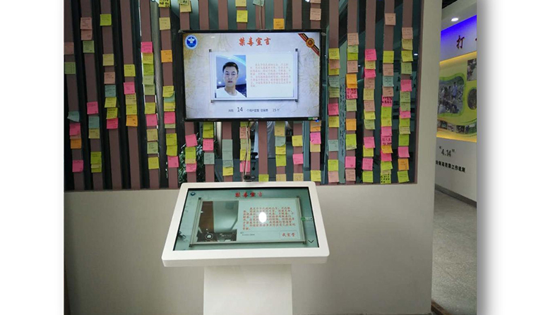 禁毒立誓拍照:电子签名及自动拍照组成,使用了先进的人像识别技术,可以在触摸显示屏上进行自由的拍 照和个人化签名、留下纪念,使得禁毒宣誓更有仪式感。
