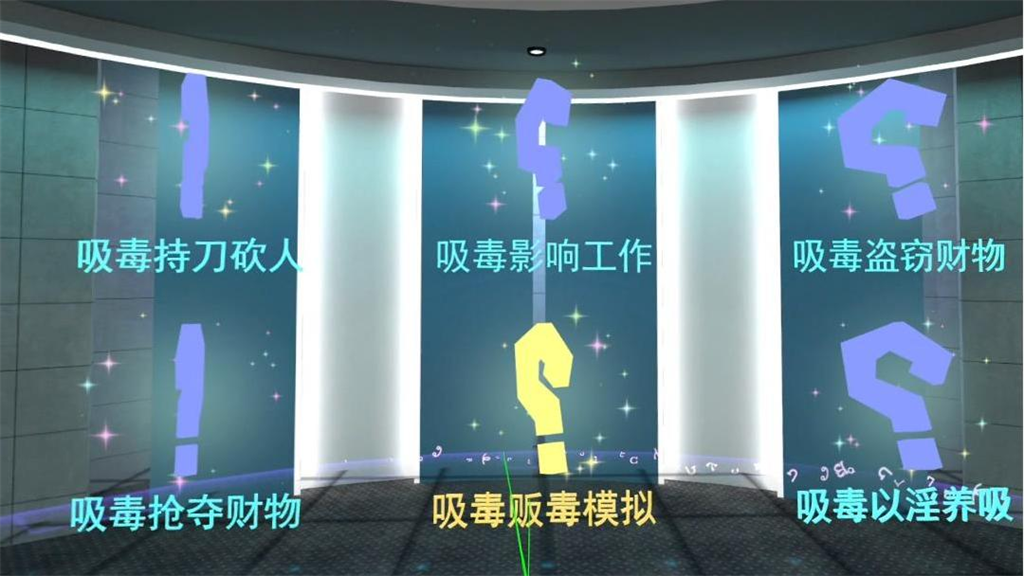 通过虚拟现实技术,感受吸毒者实施的6大危害社会公共安全的行为。包括毒品交易、丧失劳动能力、盗窃财物、抢夺财物、杀砍人、以淫养吸,让体验者仿佛置身于事件现场,感受其带来的恐怖和危害。