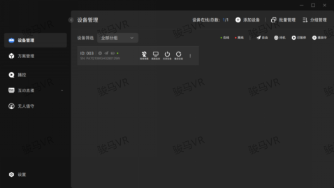 2、中控设备状态显示及异常报警:中控系统能够实时显示每一台VR头显是否连接正常、设备号等信息,可以管理客户端设备。