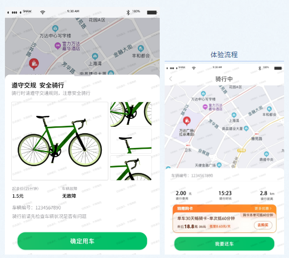 真实还原生活中的共享单车。通过平板电脑上的单机版共享单车APP,扫码开锁,开锁配有语音提示和教学教程;还车时,一键点击关闭车锁,系统便会提示“还车成功”。整个软件采用蓝牙技术开锁关锁,确保信息安全。