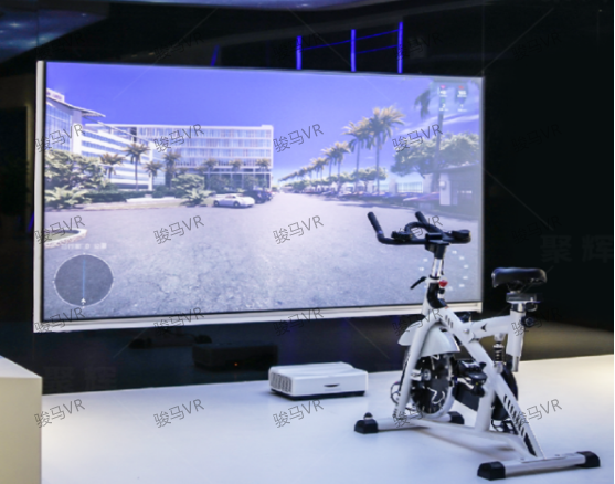 实景骑行由互动单车、触控屏及控制系统组成,体验者通过骑行控制影片的播放,影片可直接拍摄或动画制作而成,给人一种身临其境的虚拟骑行漫游之旅。(骑行影片可定制)。