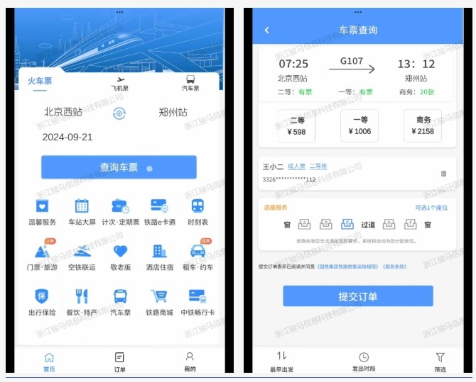 系统高度还原线上购票APP的界面与操作流程。服刑人员可以体验查询车次、预订车票、退票、查看订单等功能,掌握铁路出行的购票方式。