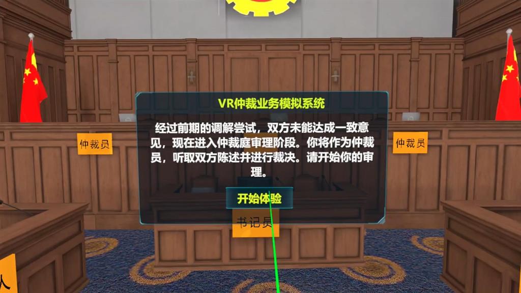 通过沉浸式虚拟现实技术,高度还原劳动仲裁的全流程场景。用户将置身于虚拟环境中,模拟体验劳动仲裁的各个环节,包括受理案件、材料准备和仲裁庭审理,以提高对仲裁业务的理解和操作能力。体验结束后,用户将参加答题测试,以检验对仲裁流程和法律知识的掌握程度。
