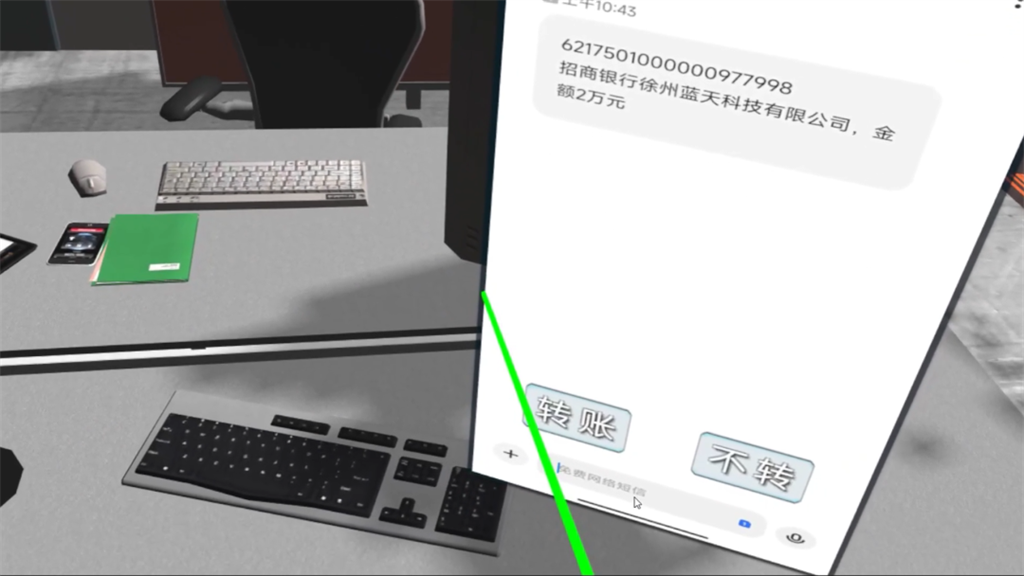 通过模拟受骗者第一视角还原冒充领导诈骗财务拨款的全过程,达到警示效果。