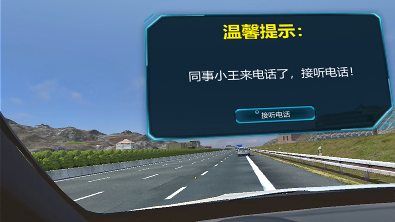 体验者将体验到在高速上接打手机,注意力不集中,最终造成事故。