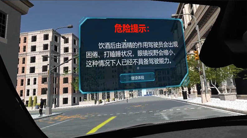 体验者将体验到饮酒后驾车撞到行人后再次驾驶车辆,并冲进咖啡厅。体验者还会体验在高速上醉酒驾驶并追尾大货车,造成严重交通事故。